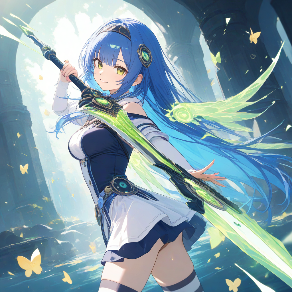 半妖精の少女: エルフと妖精のハーフ、青髪、黄眼、長身