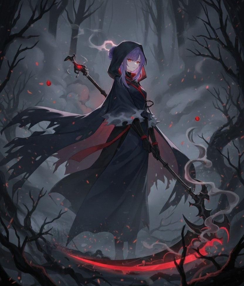: 集合体。黒いローブに赤黒い鎌を構えている