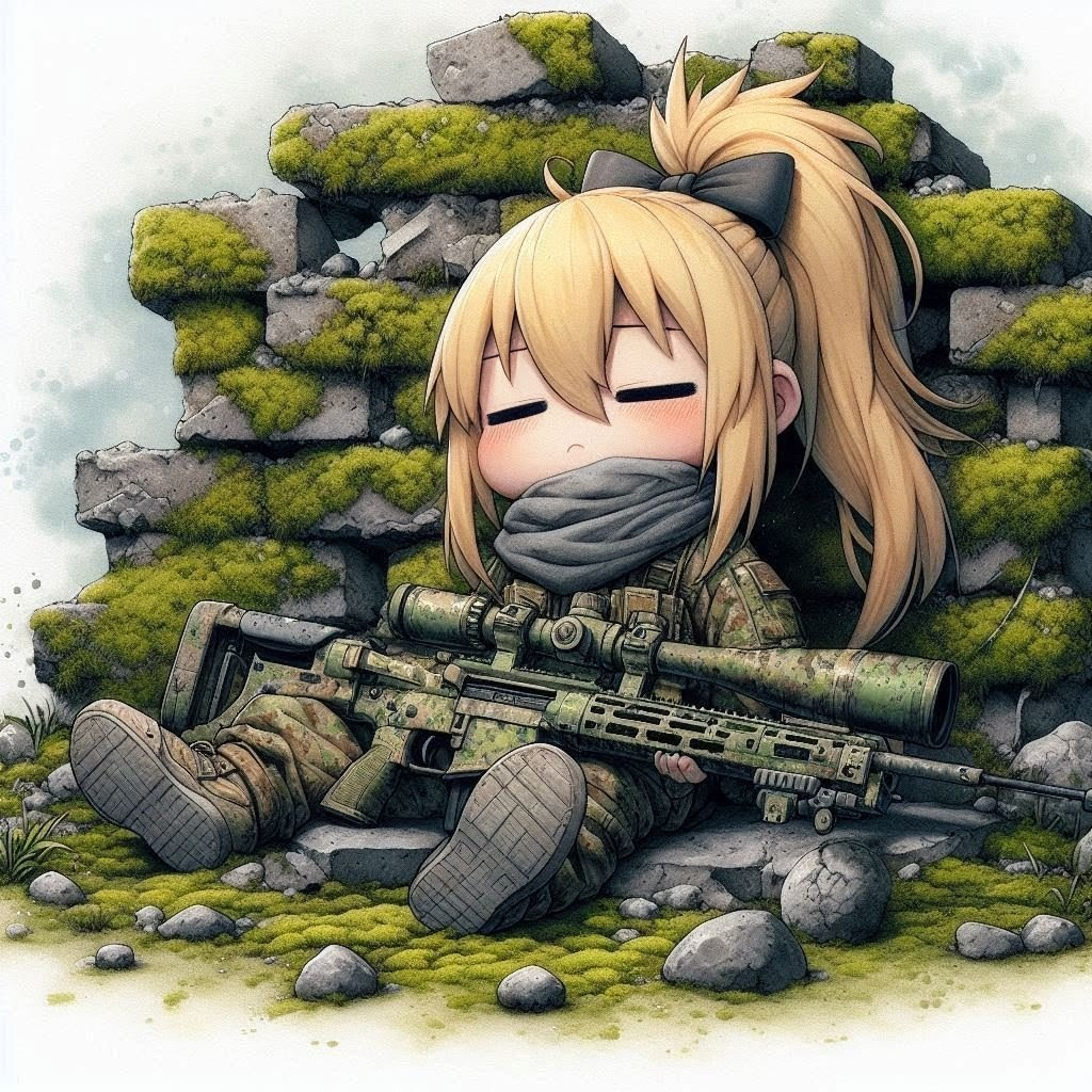 スナイパー故射撃位置さえ決めれば獲物を張り込むのみ、銃を抱えて居眠(いや起きてる?)して獲物の通る瞬間だけ全集中し撃ち抜く⋯実質労働時間は数秒、ノーストレスである