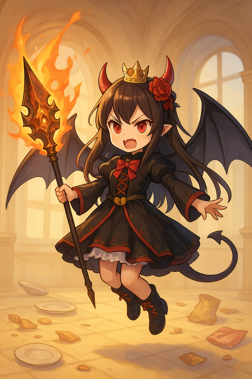 蝙蝠の翼と二本の: 角を持つ幼女/強大だが我儘な子供そのもの