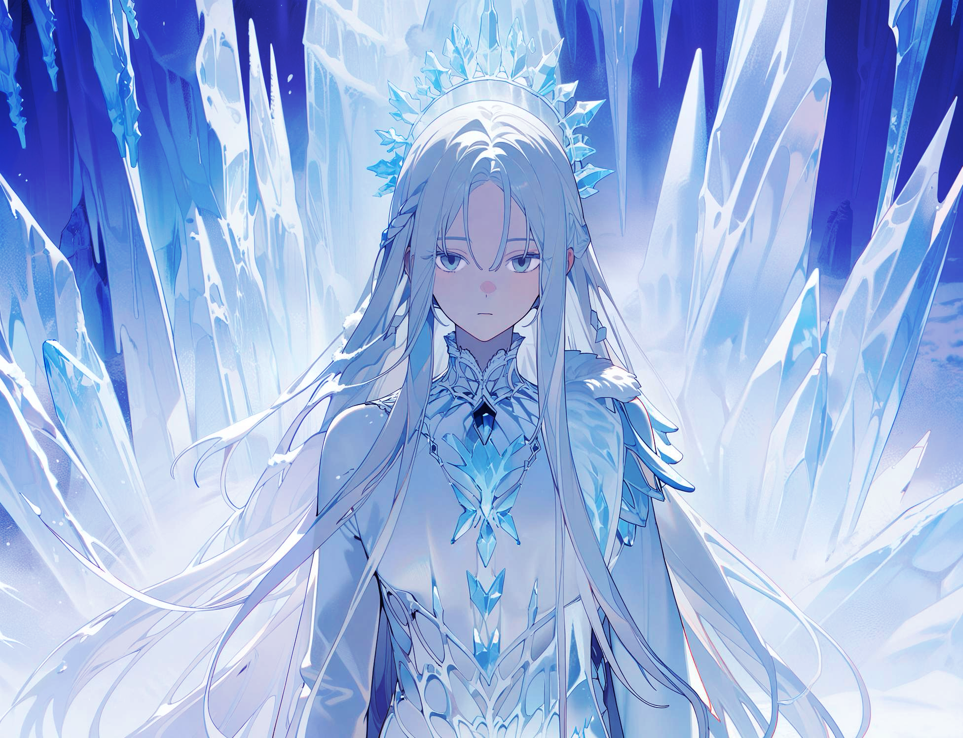 容姿: 美形の女性,無表情,白の長髪,冷たい肌