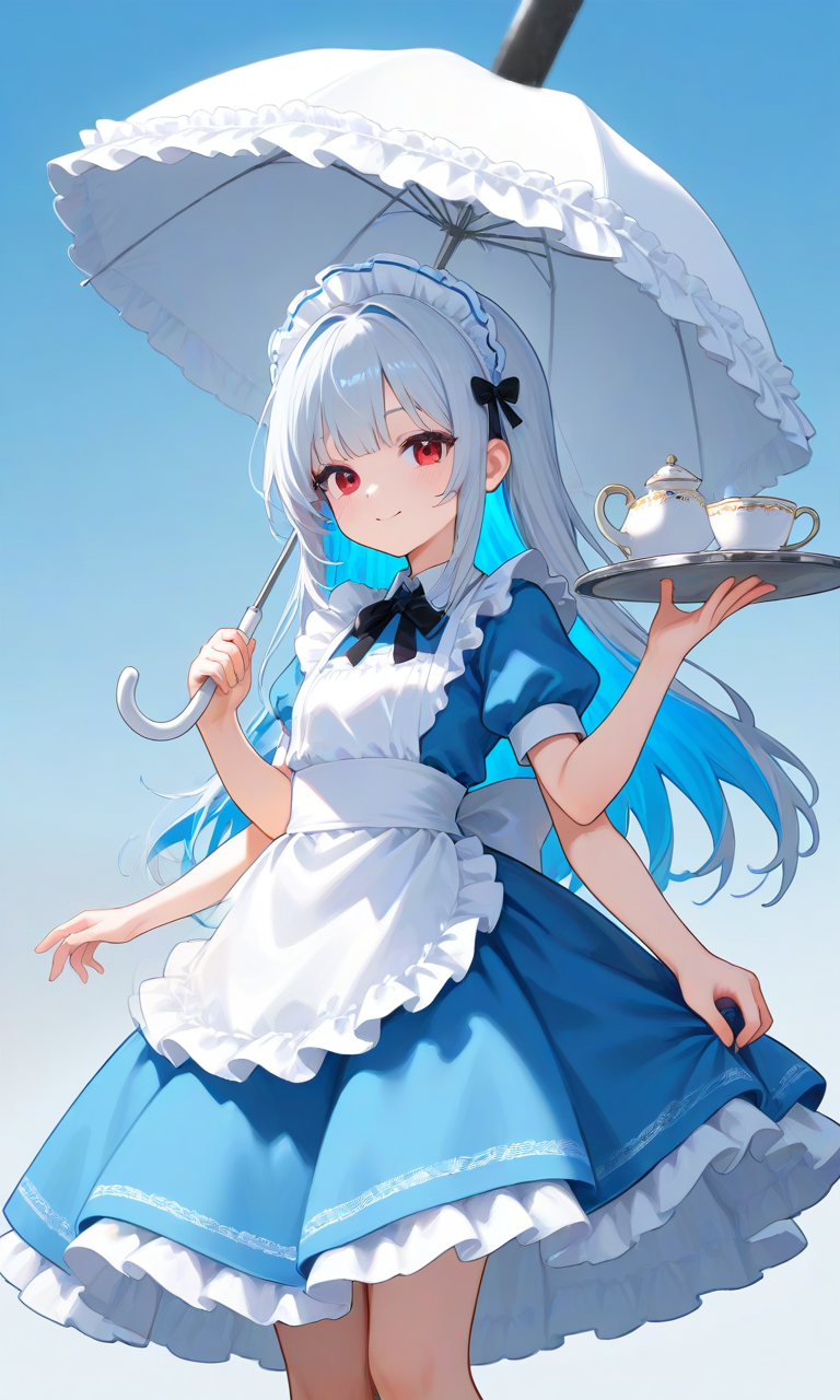 自分の見た目: マルーンの瞳に、銀色の髪、カチューシャ