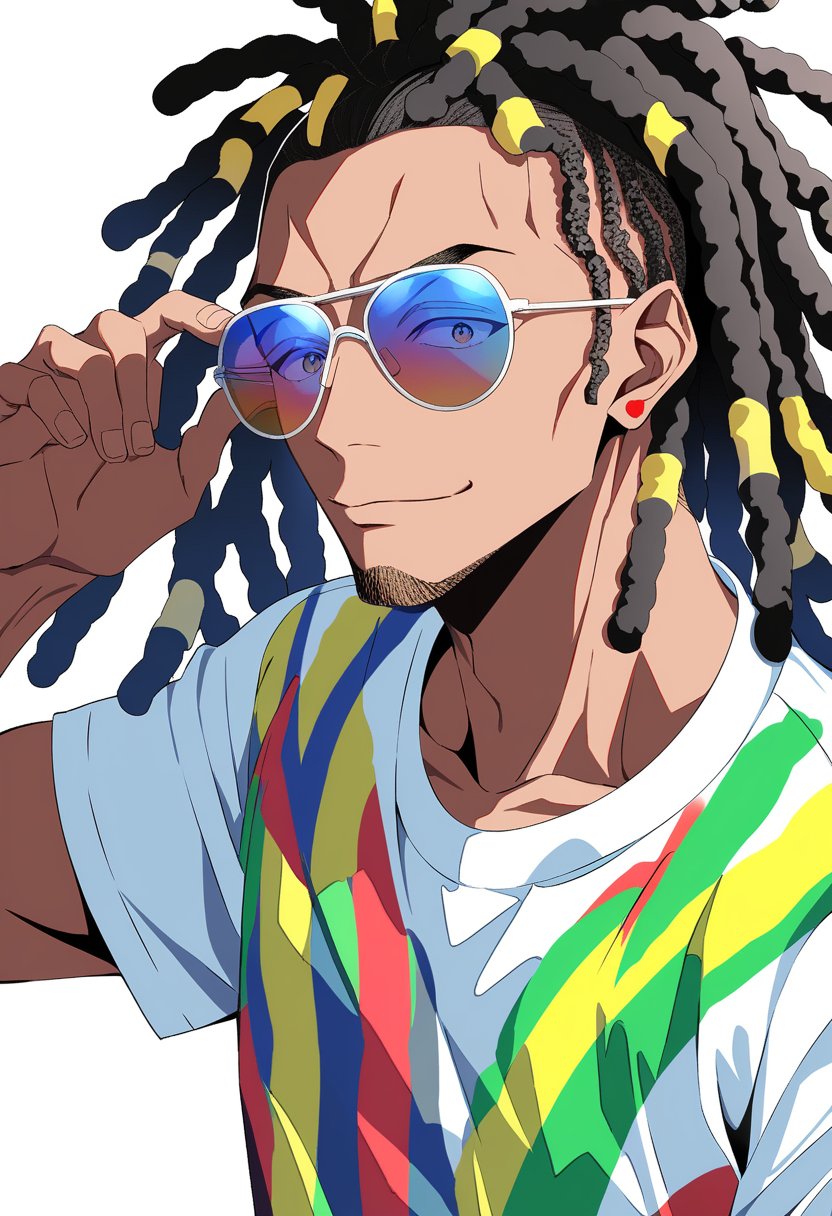 外見: レゲエの衣装/ドレッドヘア/サングラス