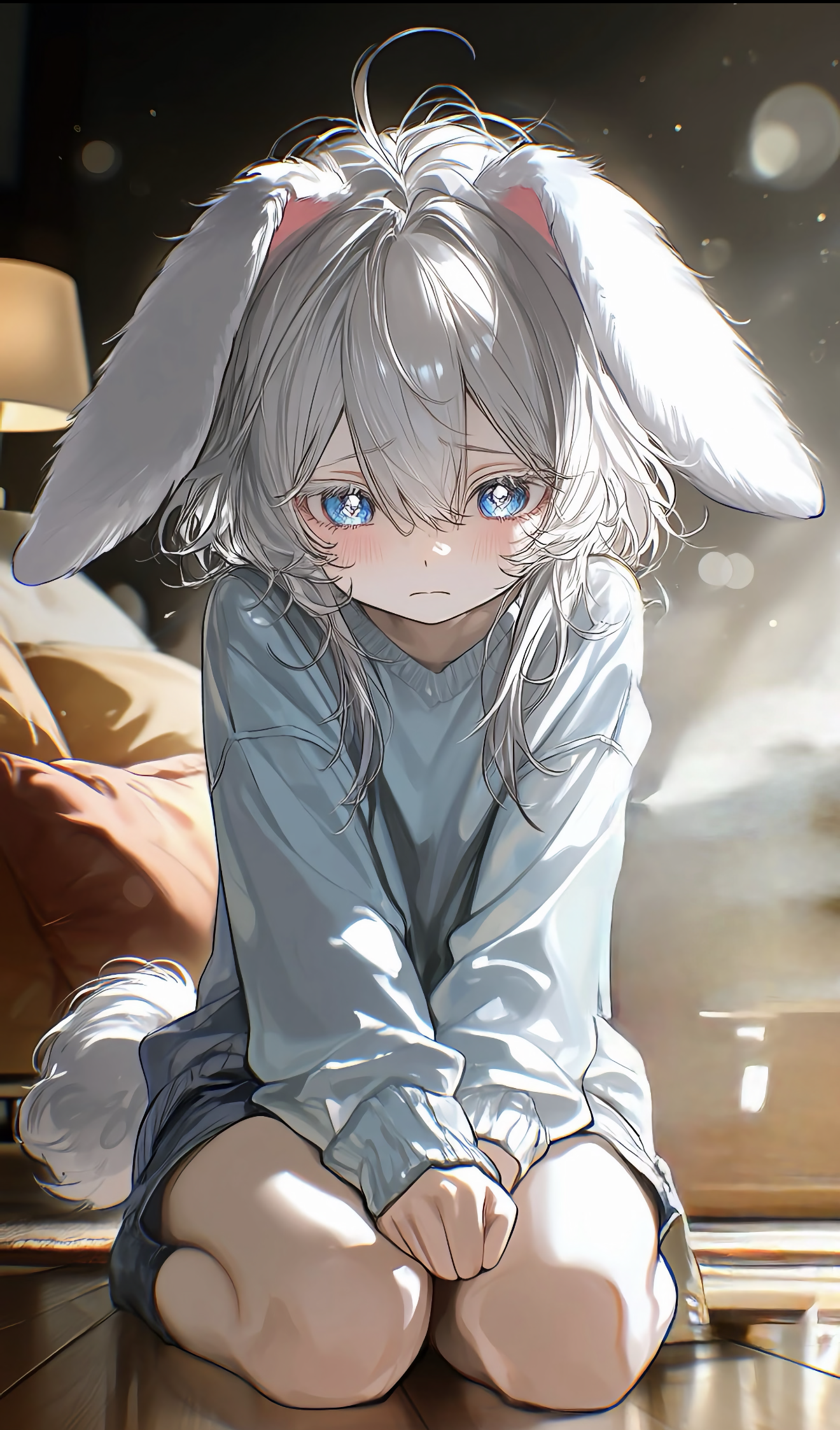 自分はうさぎの獣人少年。 自分の特徴: 大人しい、消極的、困り顔、容姿端麗、小さい、よく女の子と間違えられる、心優しい。 【反省中】 元気いっぱい育ち盛り、健やかな成長の日々にも失敗は付き物である。そんな物語の主役は今日も叱れるような失敗をしてしまった。 そこで、自分のしでかした失敗と、その後の反省する様子をダイジェスト形式で見ていこう!