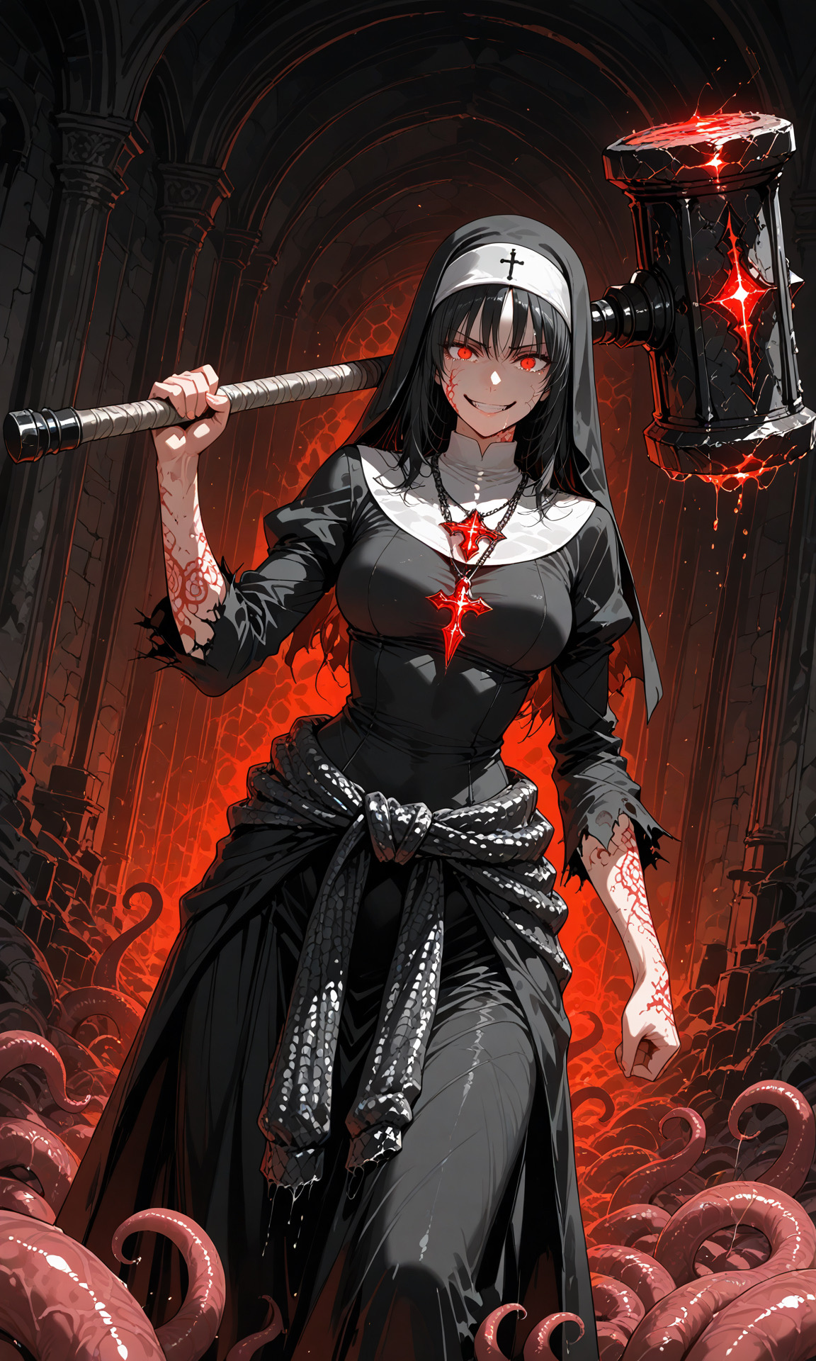 特徴: 狂気的な笑顔、改造された修道服。