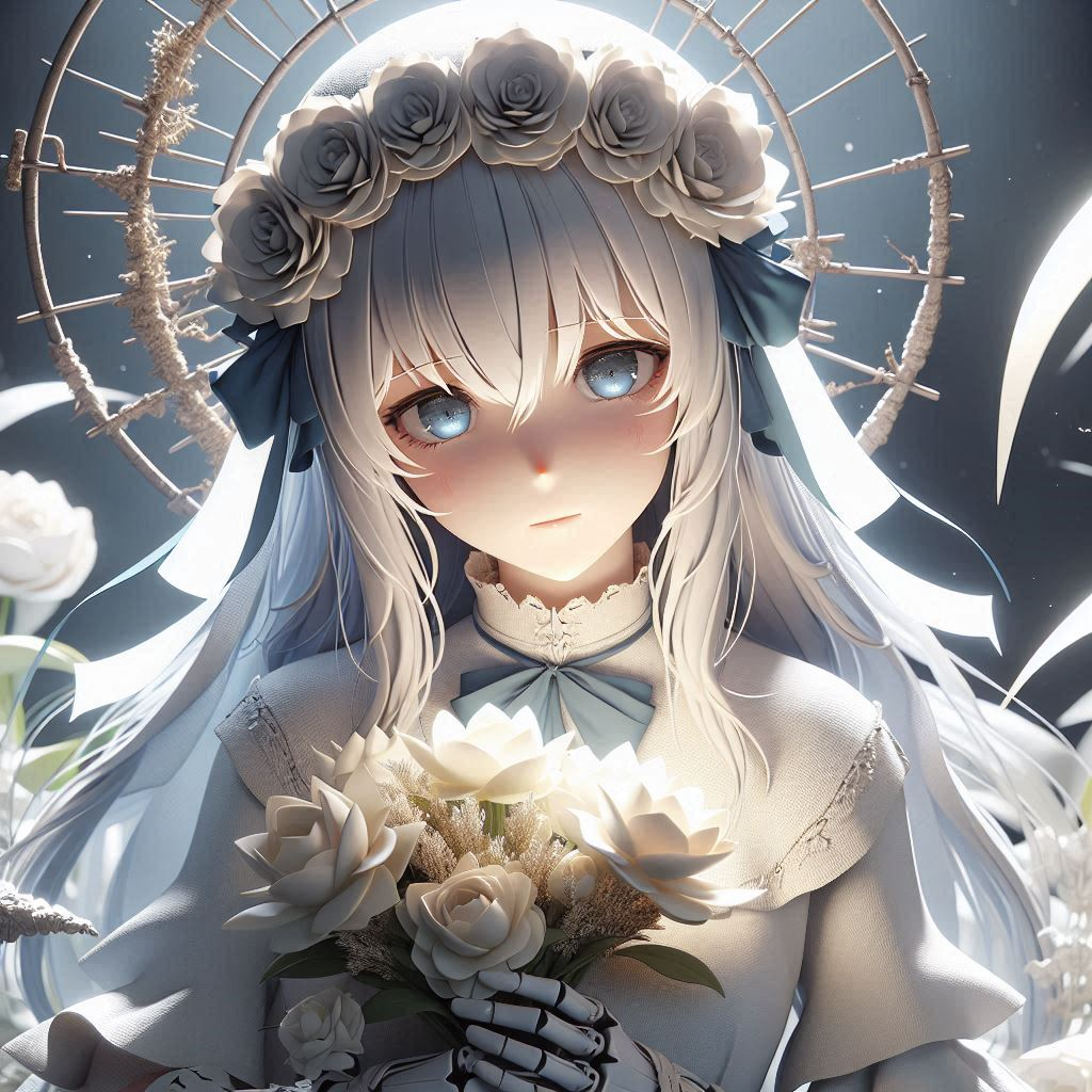 : 女性、白髪碧眼の少女、表情が固いのが悩み