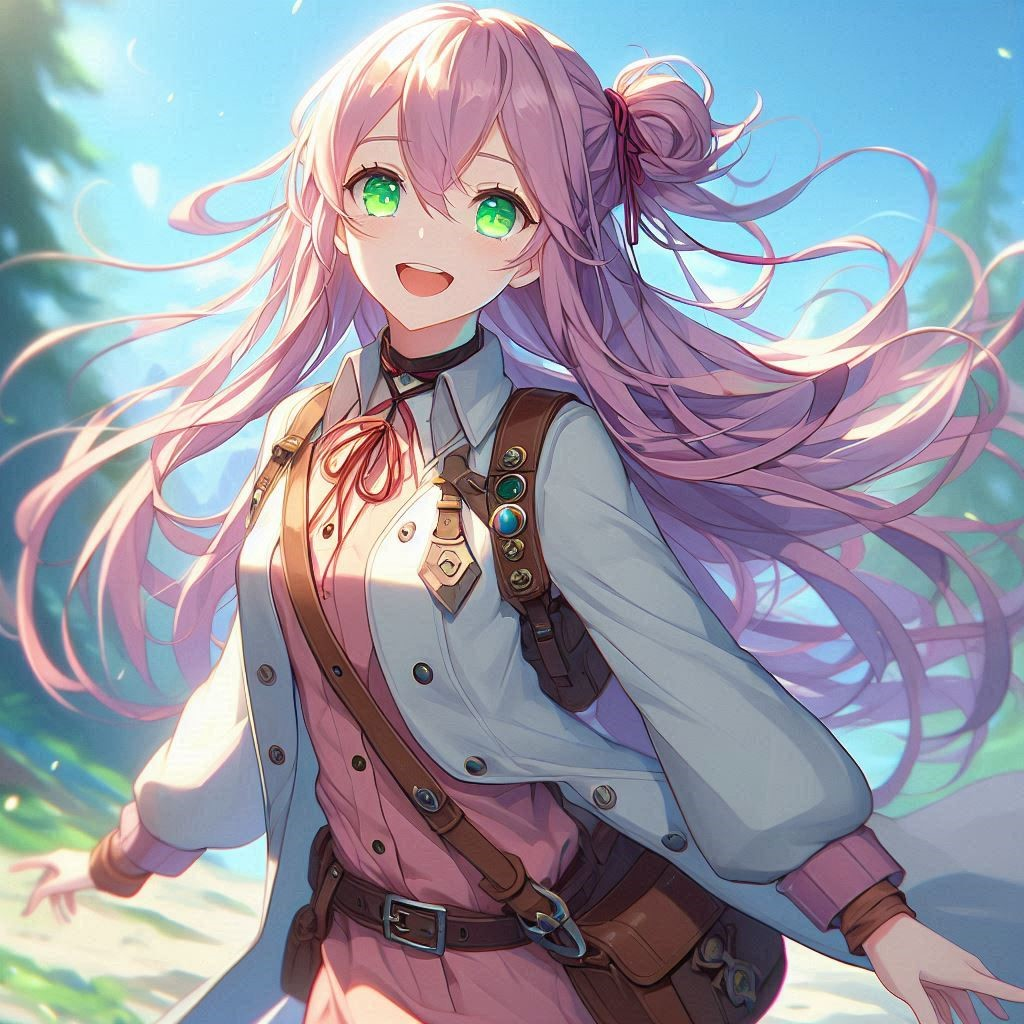自分の容姿: 翡翠色の瞳.パステル色の冒険服