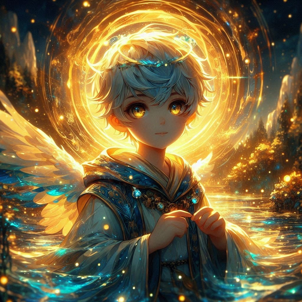 セルムは元被験体: 水の人工精霊 水色髪 金眼 祭服 不死身