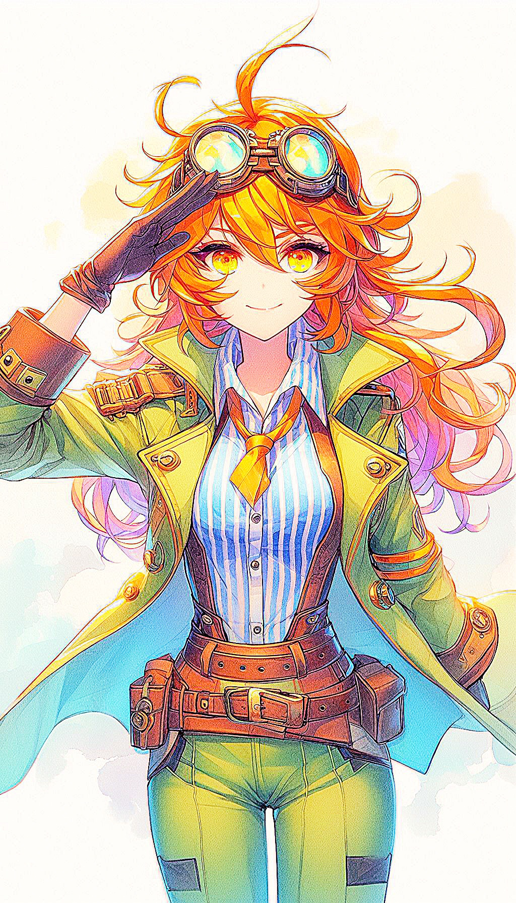 エネルギッシュな: 橙のロングヘア/琥珀の瞳/魅力的な体つき