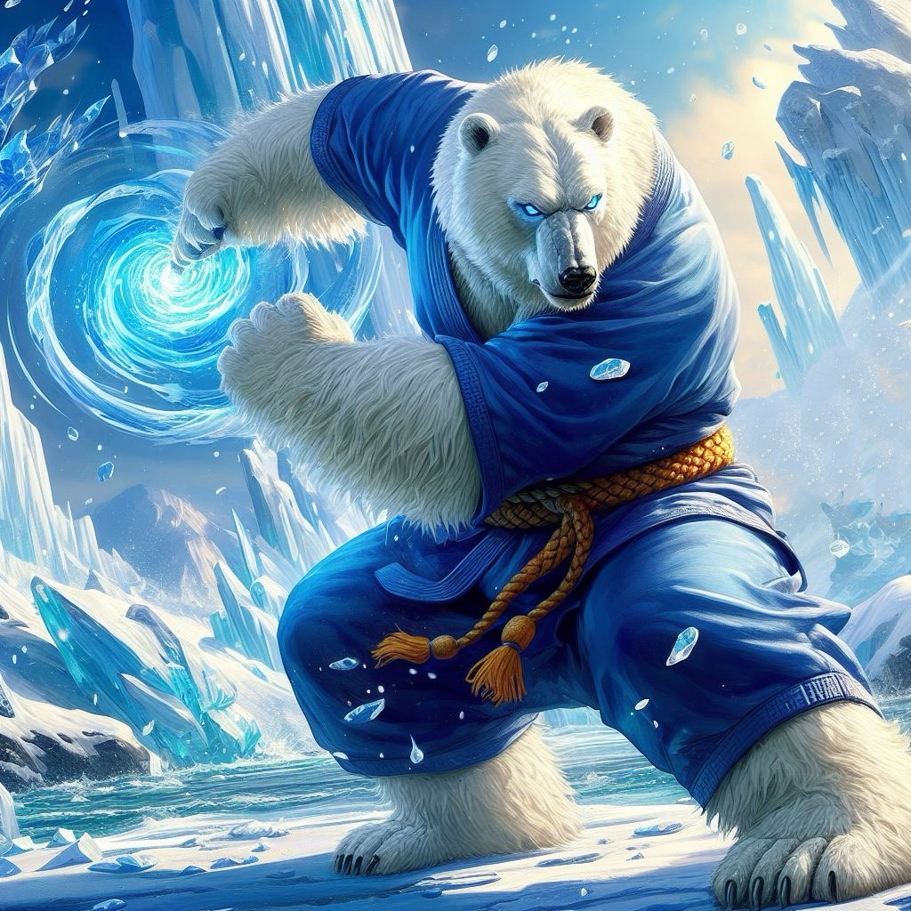 自分は攻撃を受け流し凍傷の打撃を与える北極柔術の達人のシロクマ