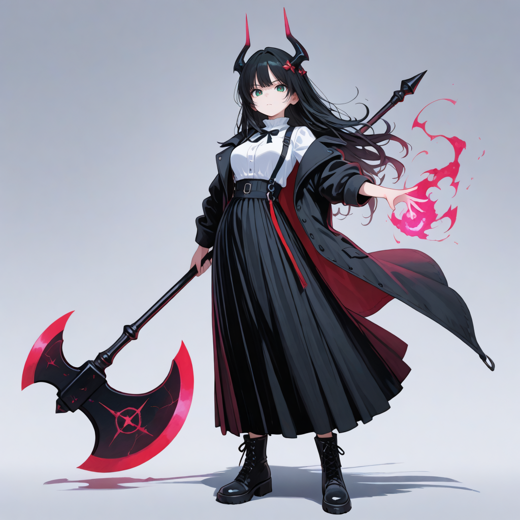 ロゼ・フリアウス//イデアの獣、美しい女性、二本角、長い黒髪、緑眼、獅子の尾、冷静冷徹、苛烈な性格