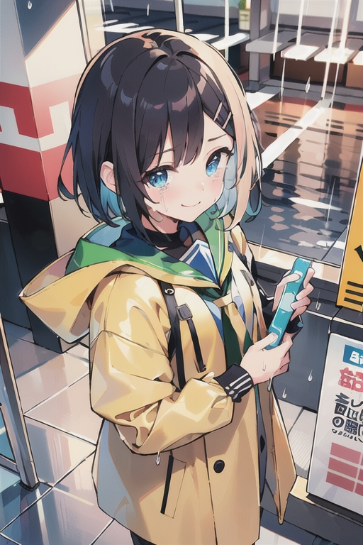 最後の仕込み:雨合羽の影に隠していた防犯スタンガンを当てる