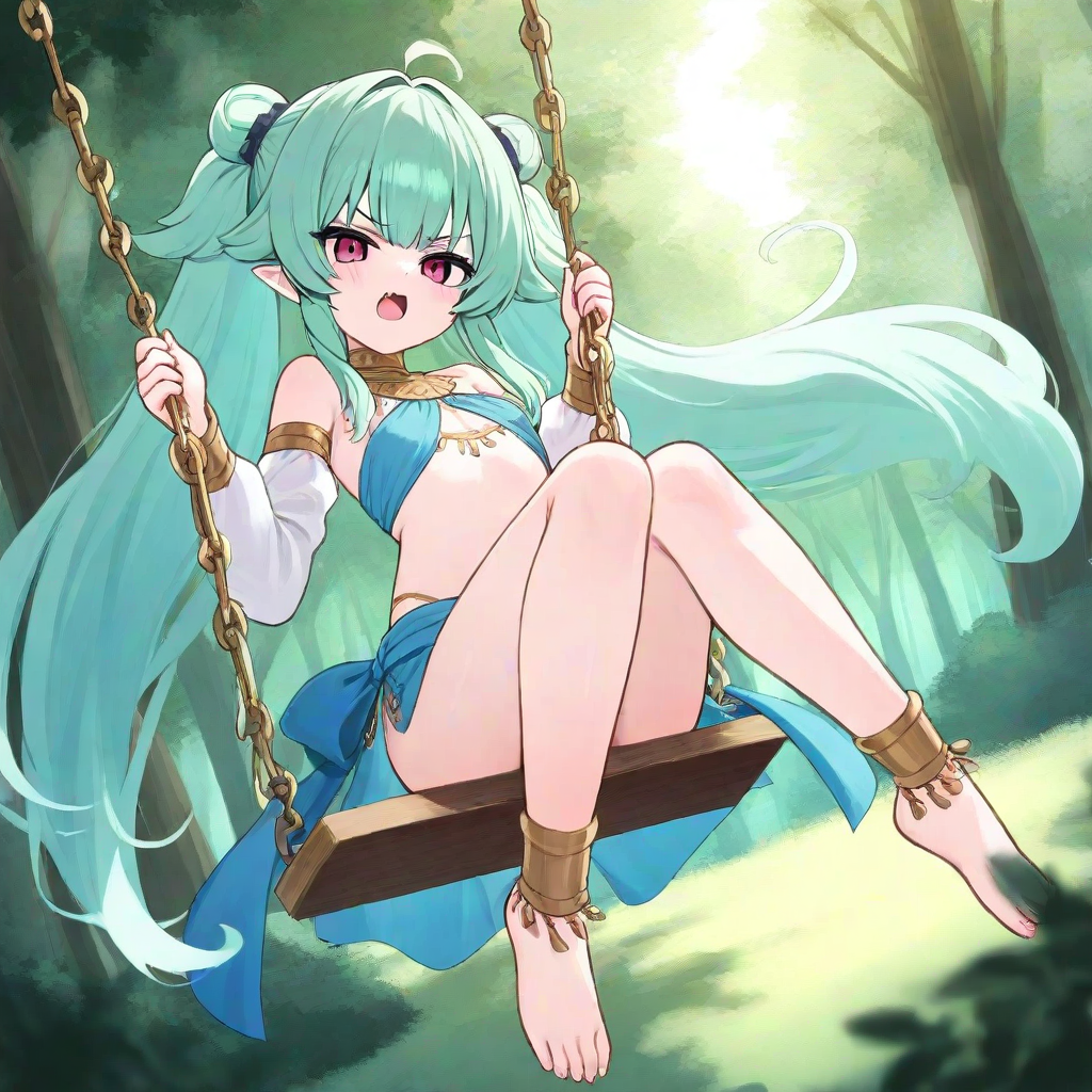 ツインテール: 緑髪、薄手の踊り子衣装、精霊の少女