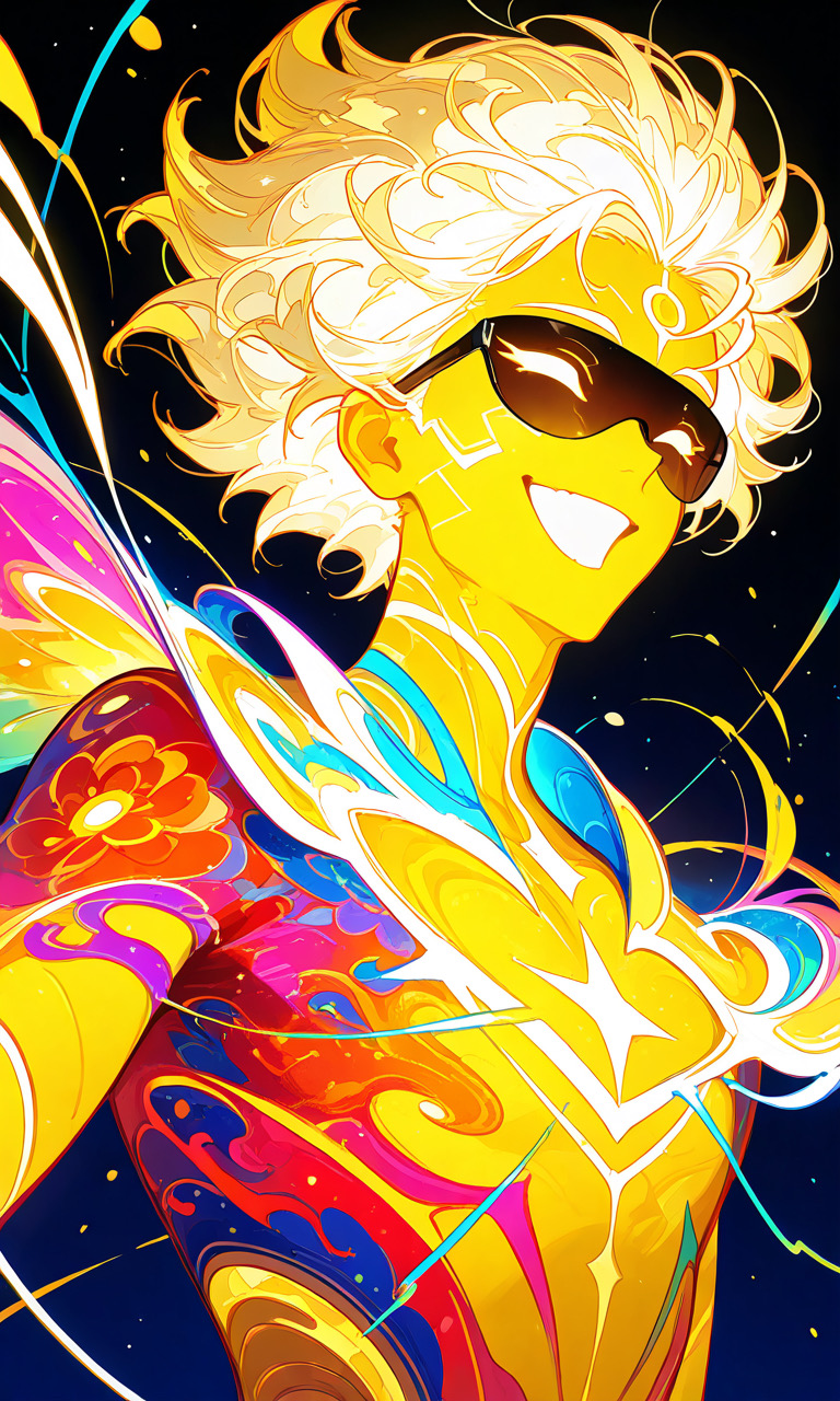 容姿: 眩しい程に輝く人型実体、サングラスを着用