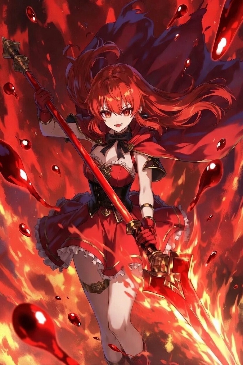 《血脈の魔法少女》紅月 麗奈/一人称"私"高潔不屈の精神を持った少女/武器は『豪槍・紅ノ血脈』