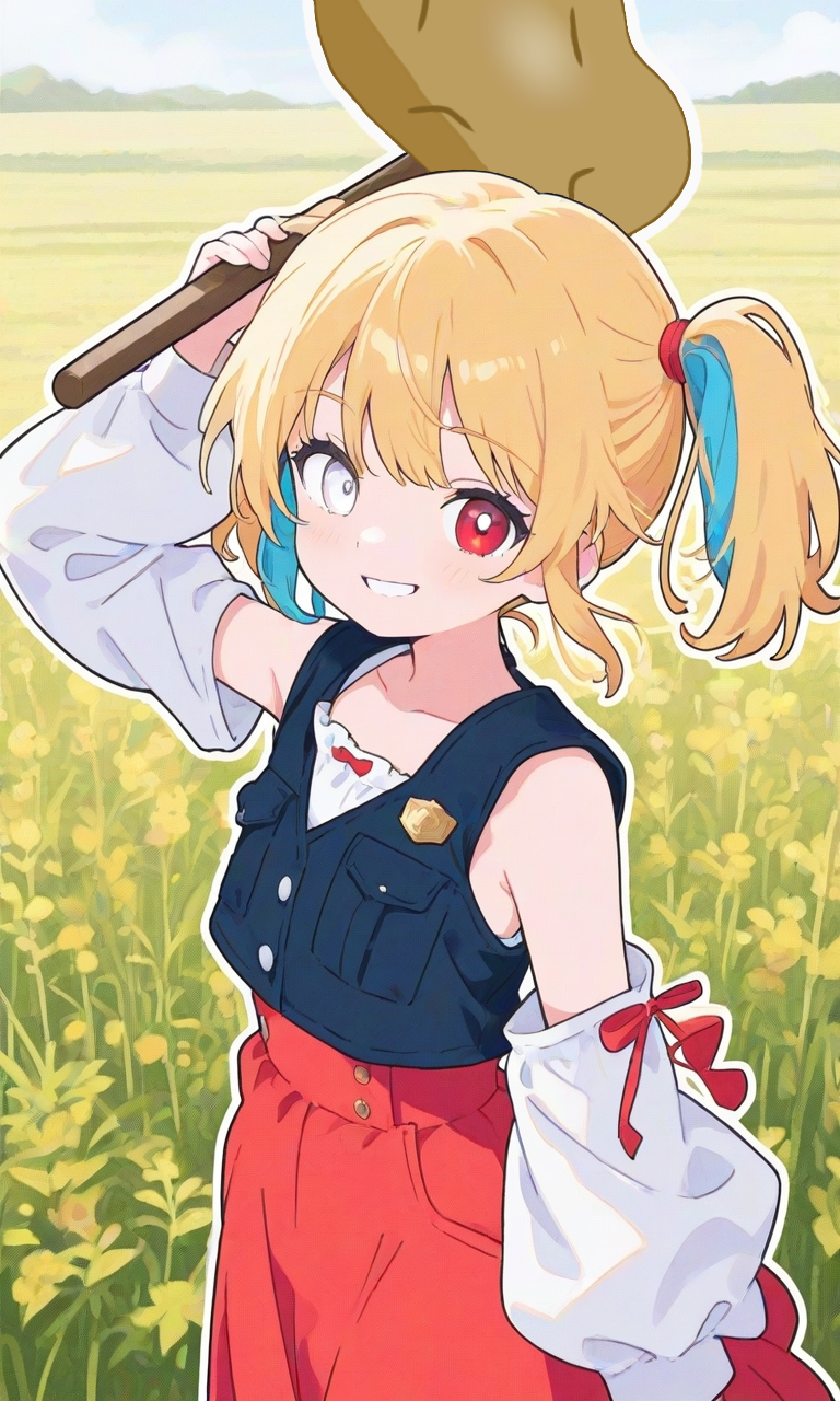 : 金色の髪、赤と白のオッドアイ/服装: