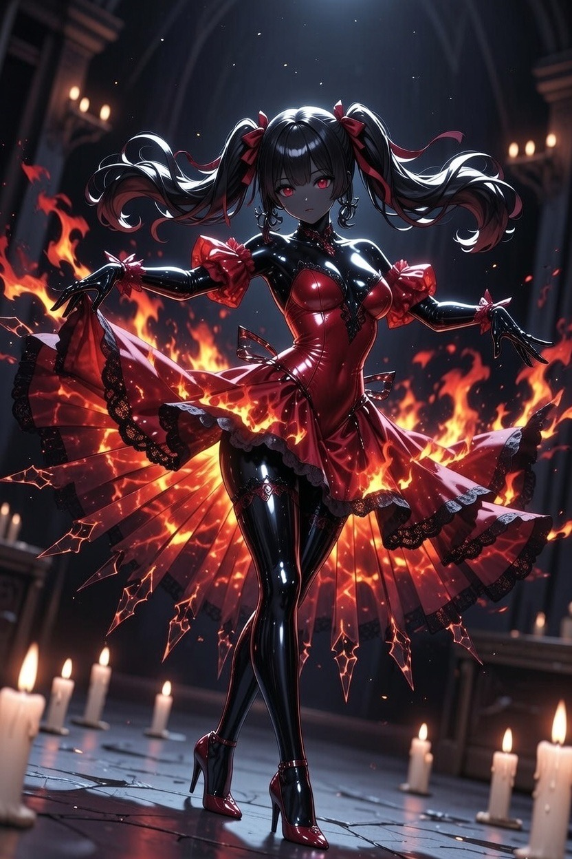 彼女のドレスは: 鉱物繊維で編まれ、熱狂が高まると赤熱する