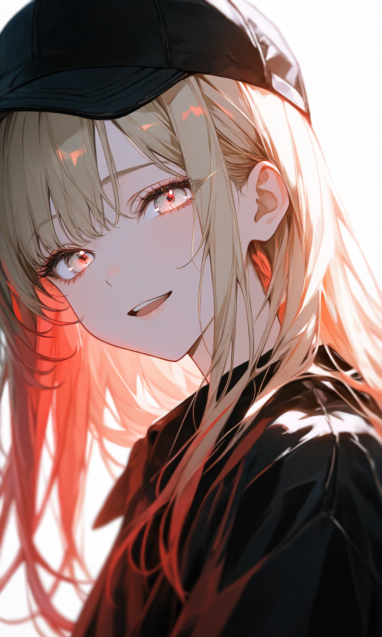 特徴: 長い金髪に黒いキャップを被った少女