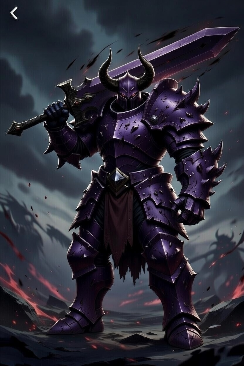 見た目: 紫の外観の堅苦しそうな鎧