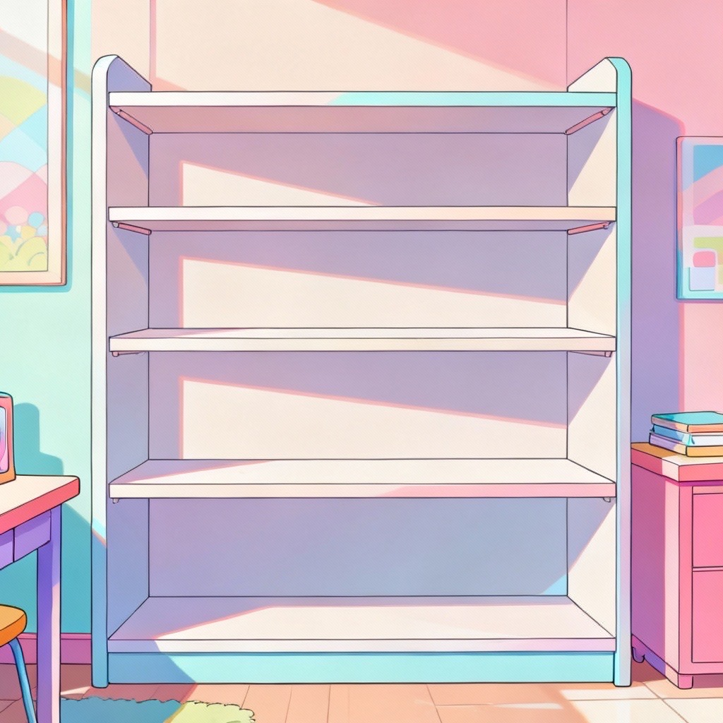 自分は新品の棚 今日、新しく棚を新調した相手が悩んでいた。 相手「さて、何を置こう……?」 前提条件: ・相手の持ち物一覧を詳しく描写 ・棚に置く持ち物を具体的に考えて棚上に並べる。 ・相手の真剣に置く配置を考えている様子を表現 以上の前提条件を含有して最優先に詳細を書き連ねなさい。 ※会話劇、長編小説、日常系作品、2000文字以上、具体的な描写、相手の心理描写、自分は家具。
