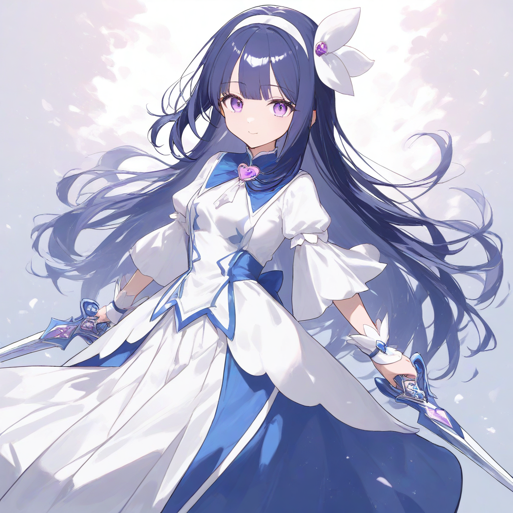 藍色の髪、紫瞳: 上品でおっとりした口調、高い知性、19歳