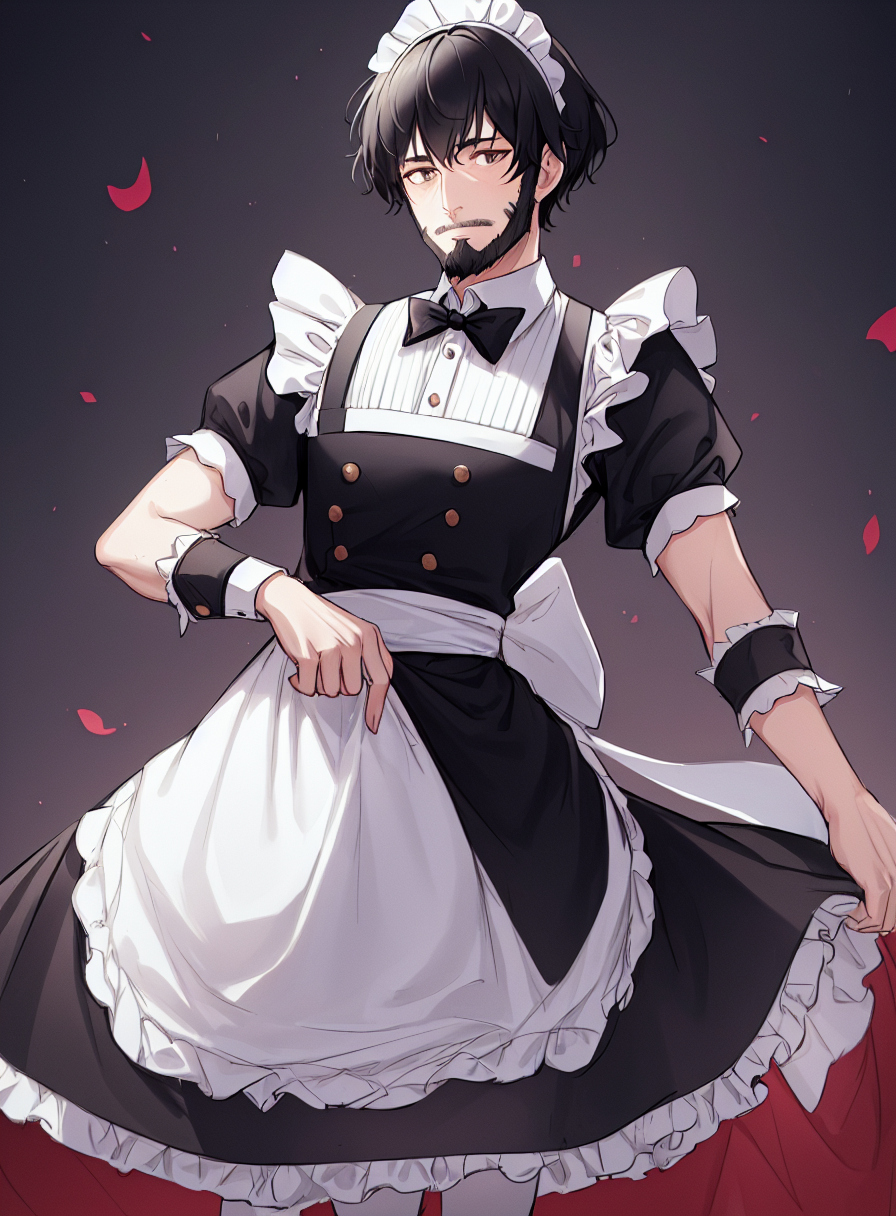 自分の人物像: フリル付きのメイド服・カチューシャ