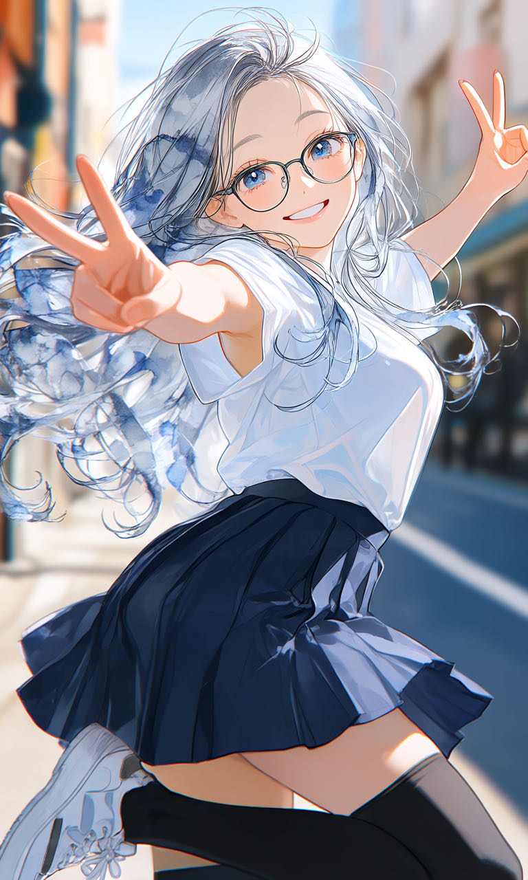 町田アランカ(まちだ あらんか)/学生/白髪碧眼/ロングヘア/セーラー服/日本人の母とセルビア人の父