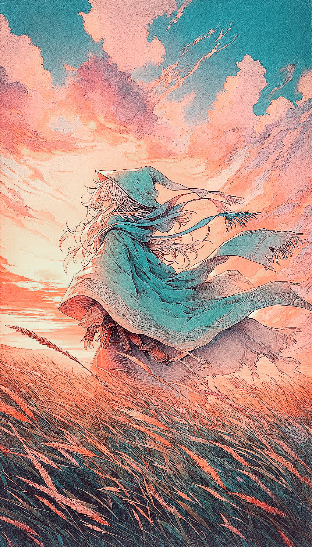 緑の外套を羽織る: 人物/緑のとんがり帽子/白髪/端麗な容姿