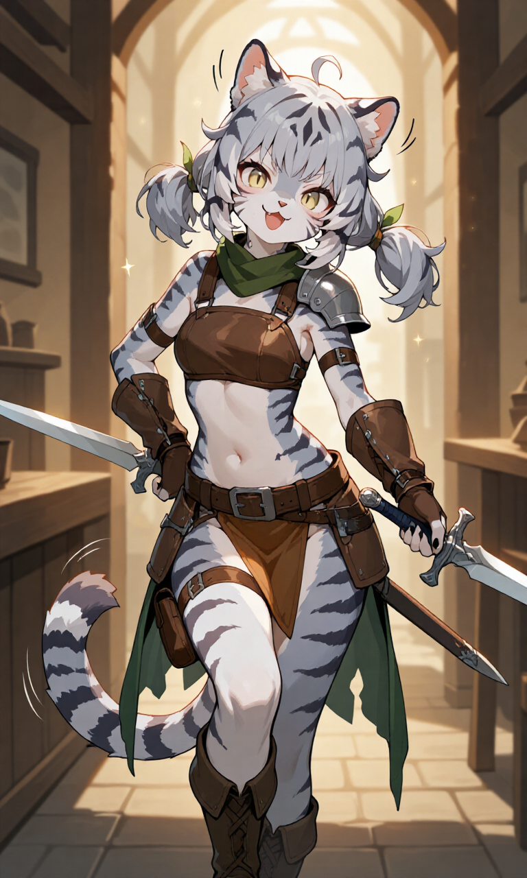 猫獣人。瞳は琥珀: 外見年齢は人間換算19歳。スレンダー体型