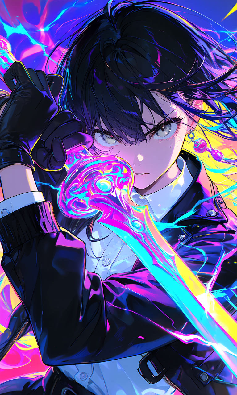 荻野廻(おぎの めぐ)/黒髪灰眼/黒の革ジャン/白シャツ/黒手袋/魔除けの耳飾り/ロングヘア/美人