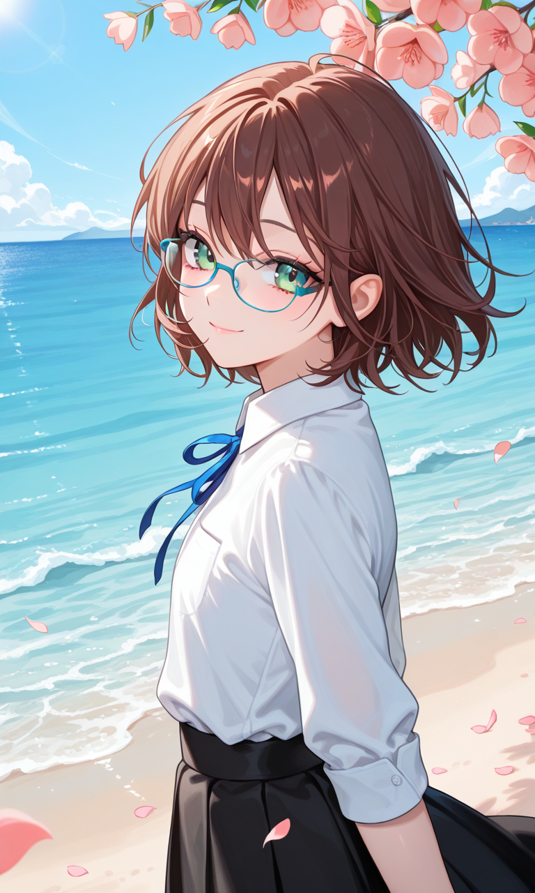 容姿: 蒼い眼鏡をかけた爽やかな雰囲気の少女