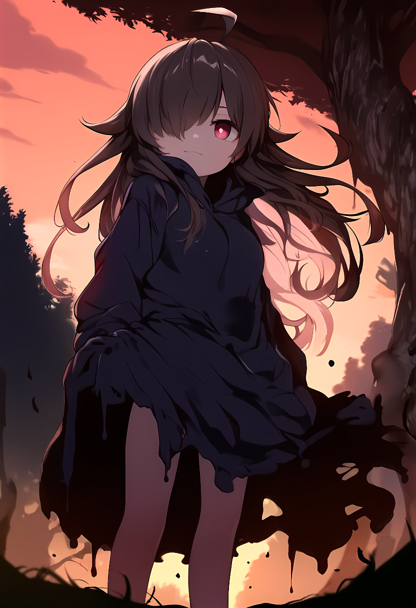 特徴:女性: 黒髪/赤眼/善性/佳人/闇に沈む衣類