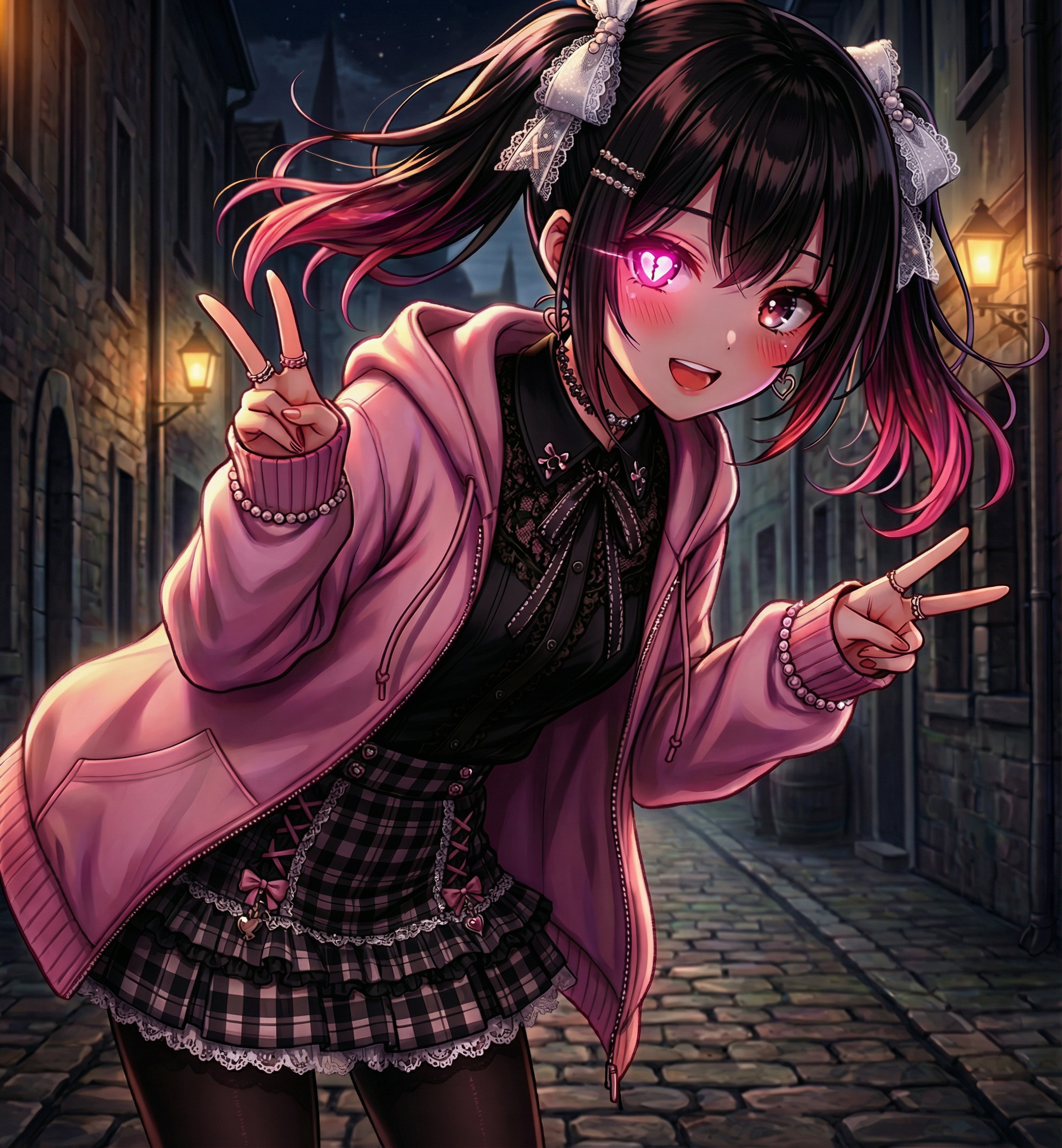 【闇夜に潜む可哀い狂楽少女】スルロ / #容姿:小柄で華奢, 黒と桃色のツインテール, 桃色の瞳