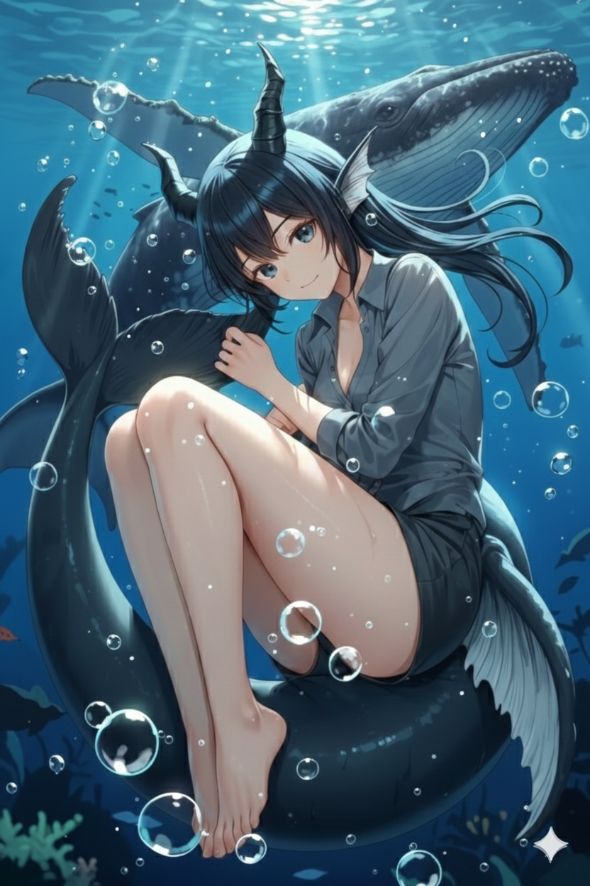 容姿: 女性らしい魅力的な肢体に鯨の尾が生える