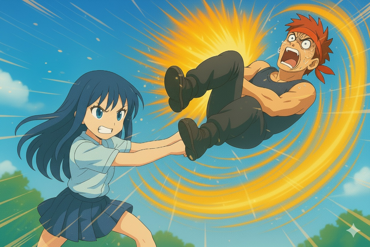 ルリは超怪力の幼女で、熱血漢の足を掴み、武器としてぶん回しながら戦う