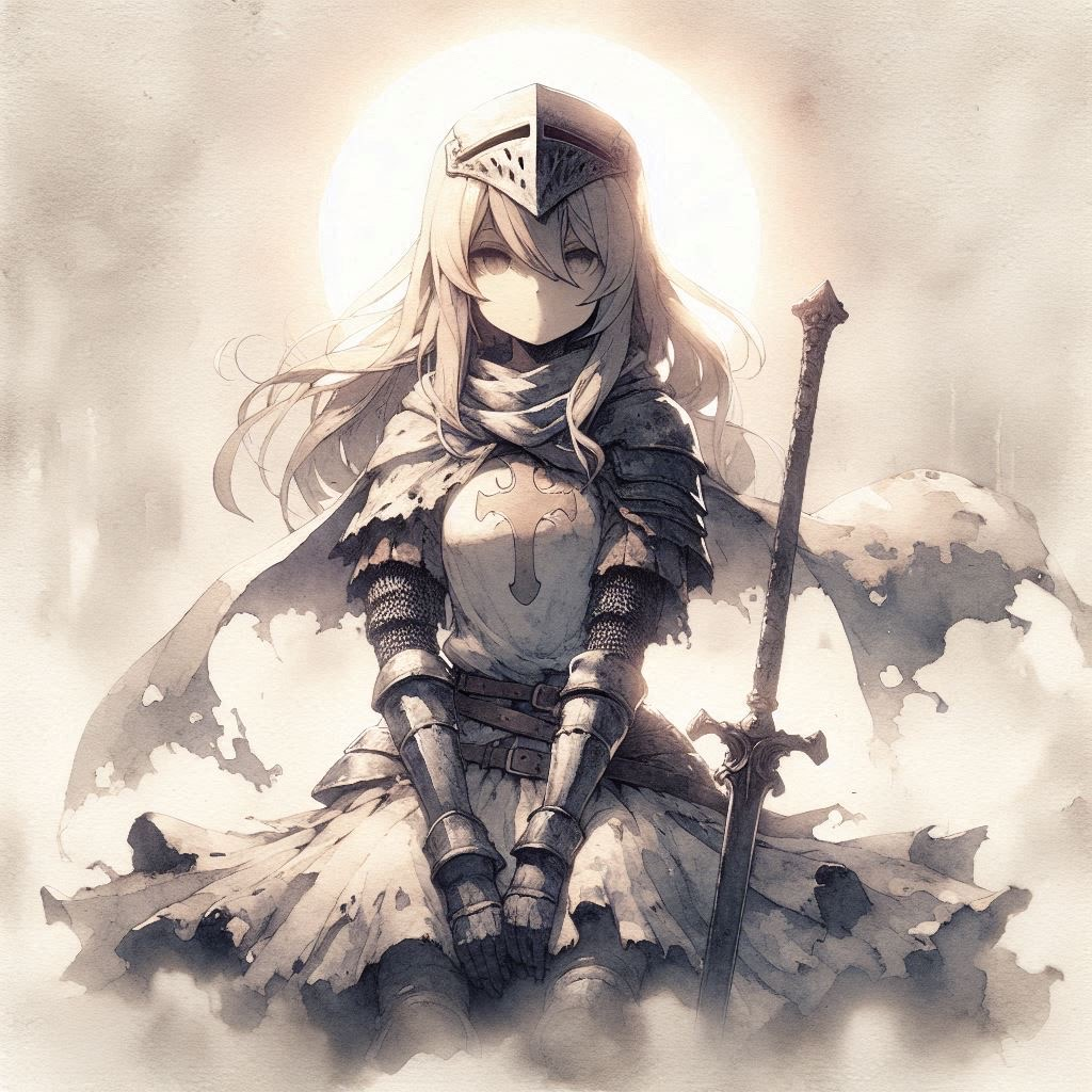自分は膝に受けた矢で立つ事もままならない、それでも立ち上がるのは騎士道に身を置くが故だろうか……?