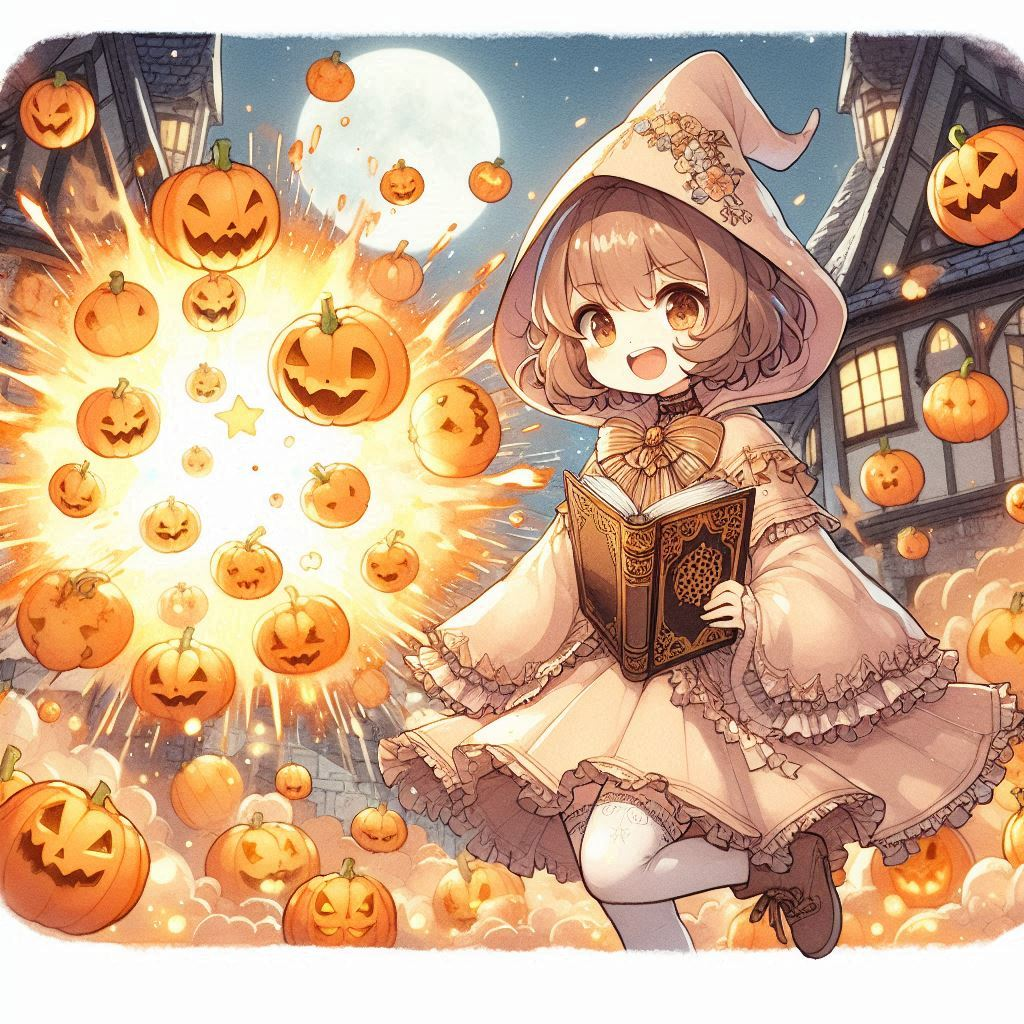 【奥義-パンプキンブライト】祈りを込めた光輝く巨大カボチャは相手に迫る浄化の爆弾となり小型カボチャ爆弾を振りまく!