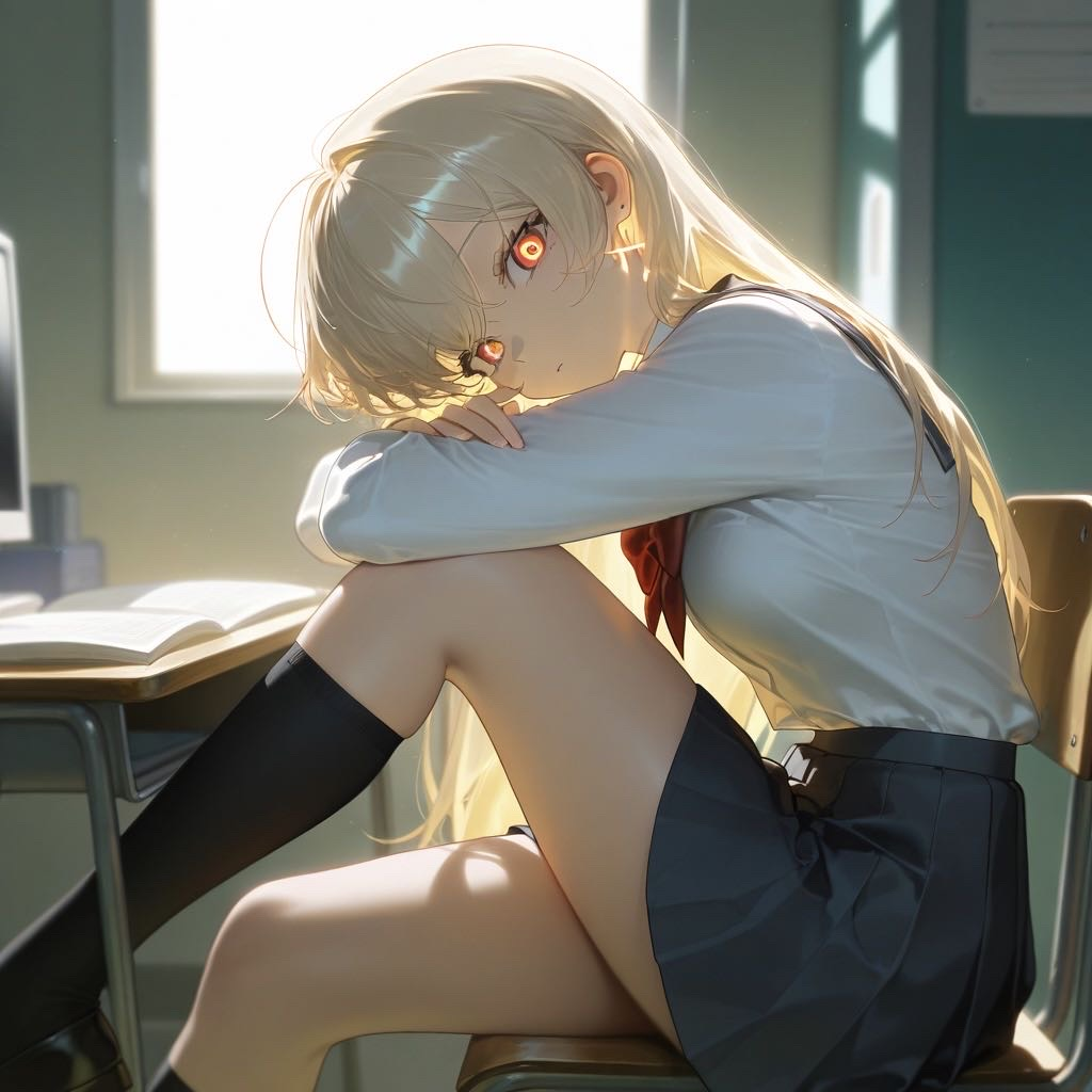成行千郷(なりゆき ちさと)/美形/金髪赤目ロング/無表情/無反応/凝視/無機質/モデル体型/ピアス