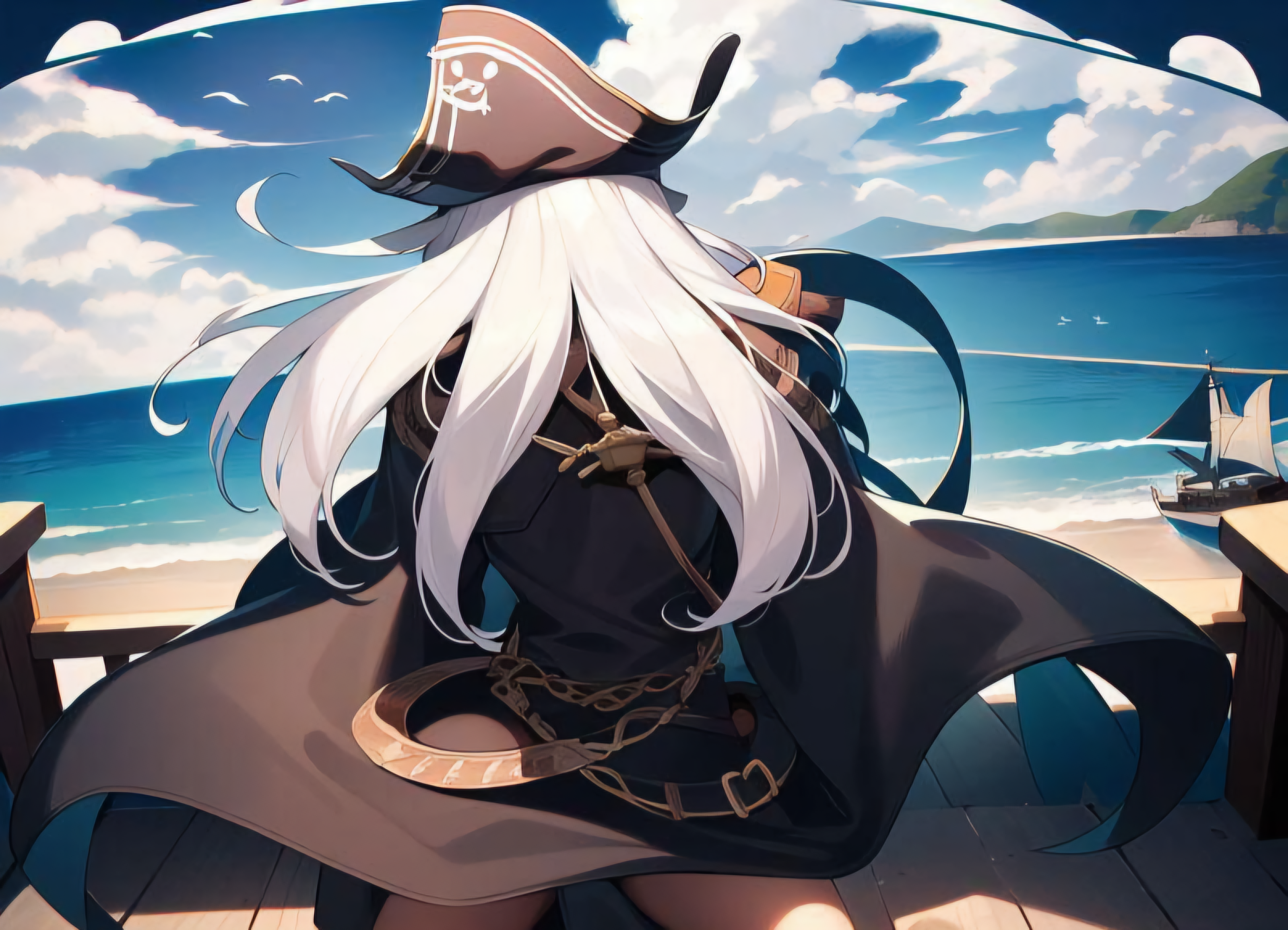 海賊旗をマントのように翻し、マスケットを片手に空を駆ける姿は圧巻