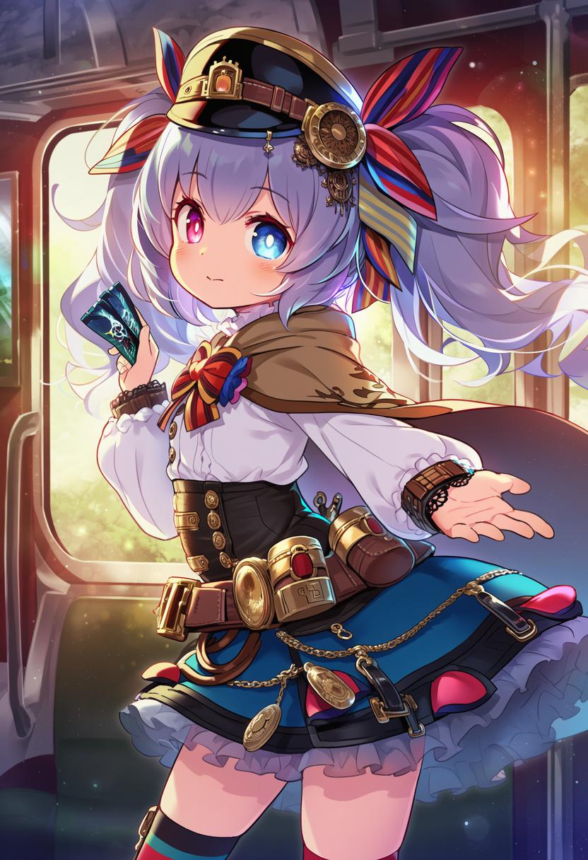 特徴:女性: 銀髪/朗らか/ツインテール/子供/車掌服